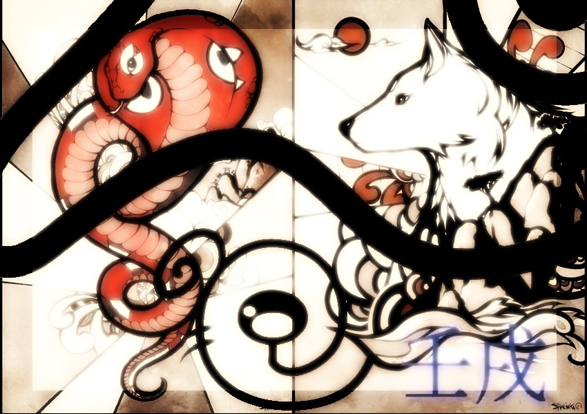 dibujo original de sumi-e style http://shalinka.deviantart.com/art/Sumi-e-style-The-cats-the-snake-and-the-dog-377074589